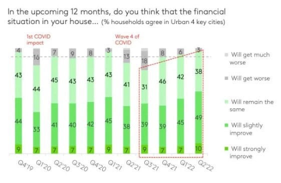 Tuy nền kinh tế Việt Nam bị ảnh hưởng nhẹ trước sự trở lại không lường trước được của COVID-19 nhưng với tình hình đã giảm căng thẳng, niềm tin của người tiêu dùng về sự phục hồi và phát triển kinh tế cũng như sức mua đã trở nên lạc quan hơn, gần như trở về mức trước giai đoạn dịch.